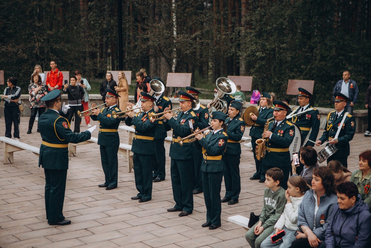 Кульминацией всего памятного события накануне великого праздника стала песня, исполненная всеми участниками акции «День Победы!» под мощные аккорды военного оркестра.