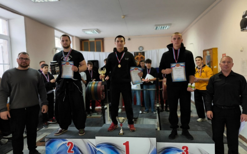 Деревянко Кирилл — 1 место, весовая категория до 110 кг, результат 142,5 кг (установил рекорд — 145 кг).