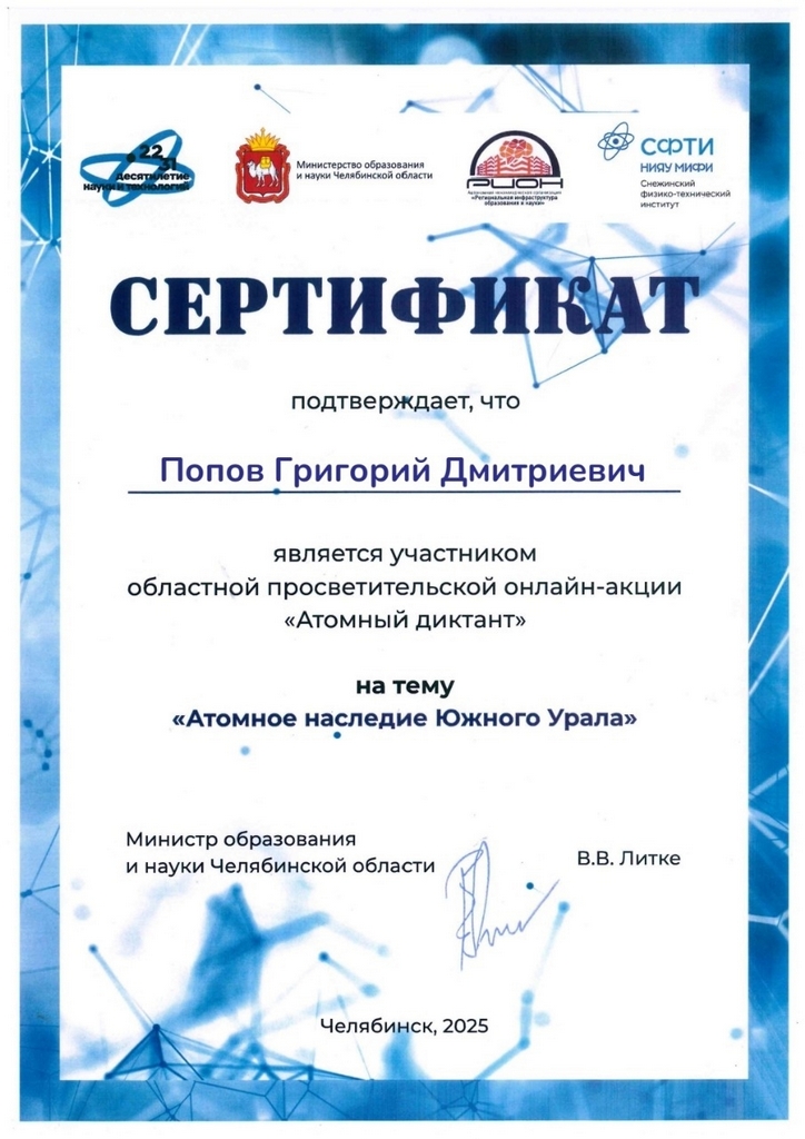 С 17 ноября 2025 года проходит масштабная областная просветительская акция - «Атомный диктант», посвященная 80-летию атомной промышленности России. Тема этого года - «Атомное наследие Южного Урала».