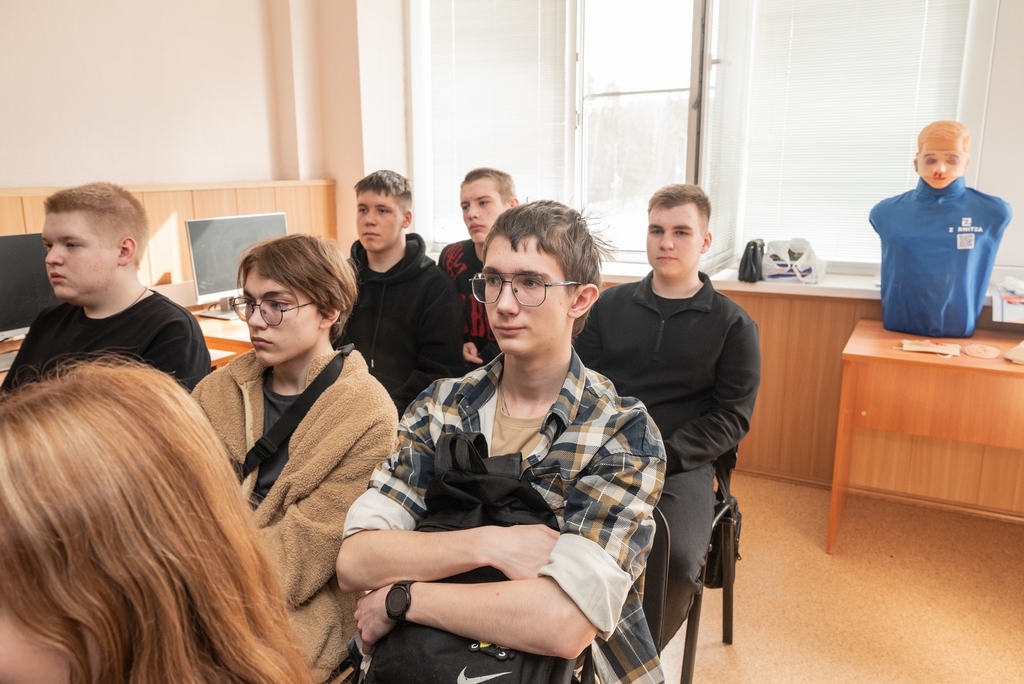 Сотрудники службы охраны труда Лариса Зенкович и Людмила Маленкова рассказали ребятам о предотвращении травм и профзаболеваний на предприятии. Студенты на примере фильма «Человек горит», который был снят по реальному несчастному случаю несколько лет назад на ПСЗ, обсудили тему соблюдения всех инструкций при выполнении опасных работ. Лариса Зенкович подробно остановилась на теме ожогов, рассказала о наполнении аптечки, объяснила, как нужно себя вести, если необходимо оказать помощь. Два часа живого общения, полезная информация, которая точно пригодится и при изучении дисциплины «Основы безопасности и защиты Родины».