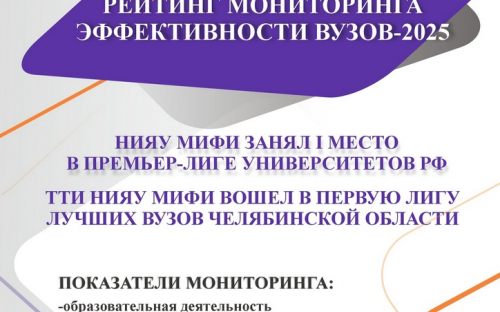 НИЯУ МИФИ занял первое место среди всех вузов России в рейтинге мониторинга эффективности вузов 2025 и вошёл в Премьер-лигу.Отметим, что всего в Премьер-лигу вошли только 12 университетов РФ, набрав одинаковое количество баллов.