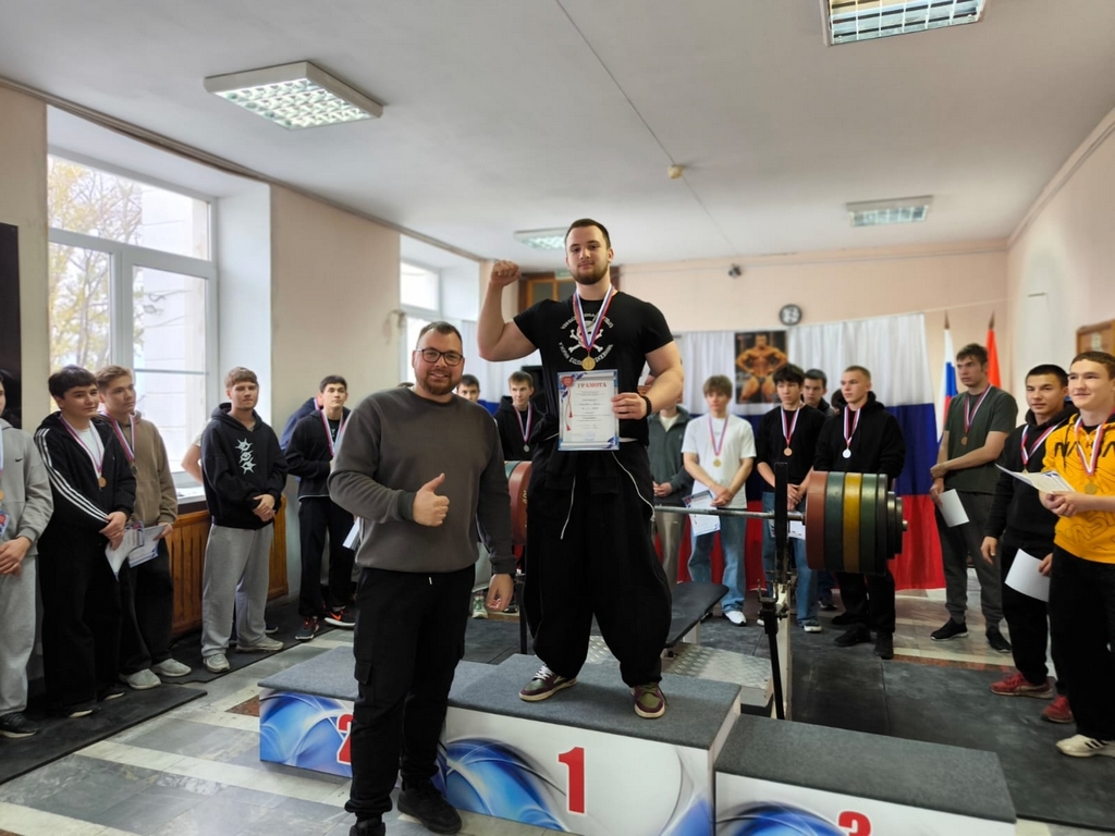 Деревянко Кирилл — 1 место, весовая категория до 110 кг, результат 142,5 кг (установил рекорд — 145 кг).