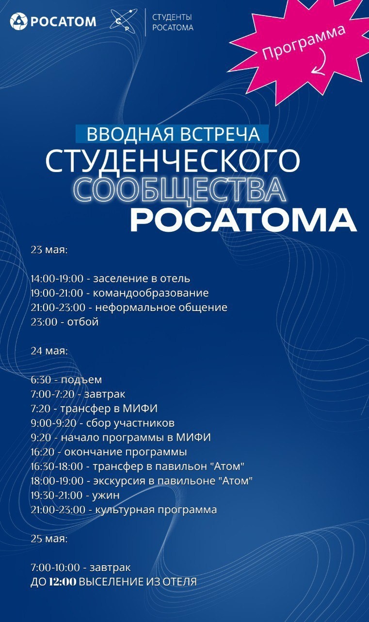 Встреча пройдет в НИЯУ МИФИ и павильоне «АТОМ» на ВДНХ.