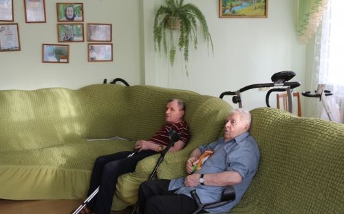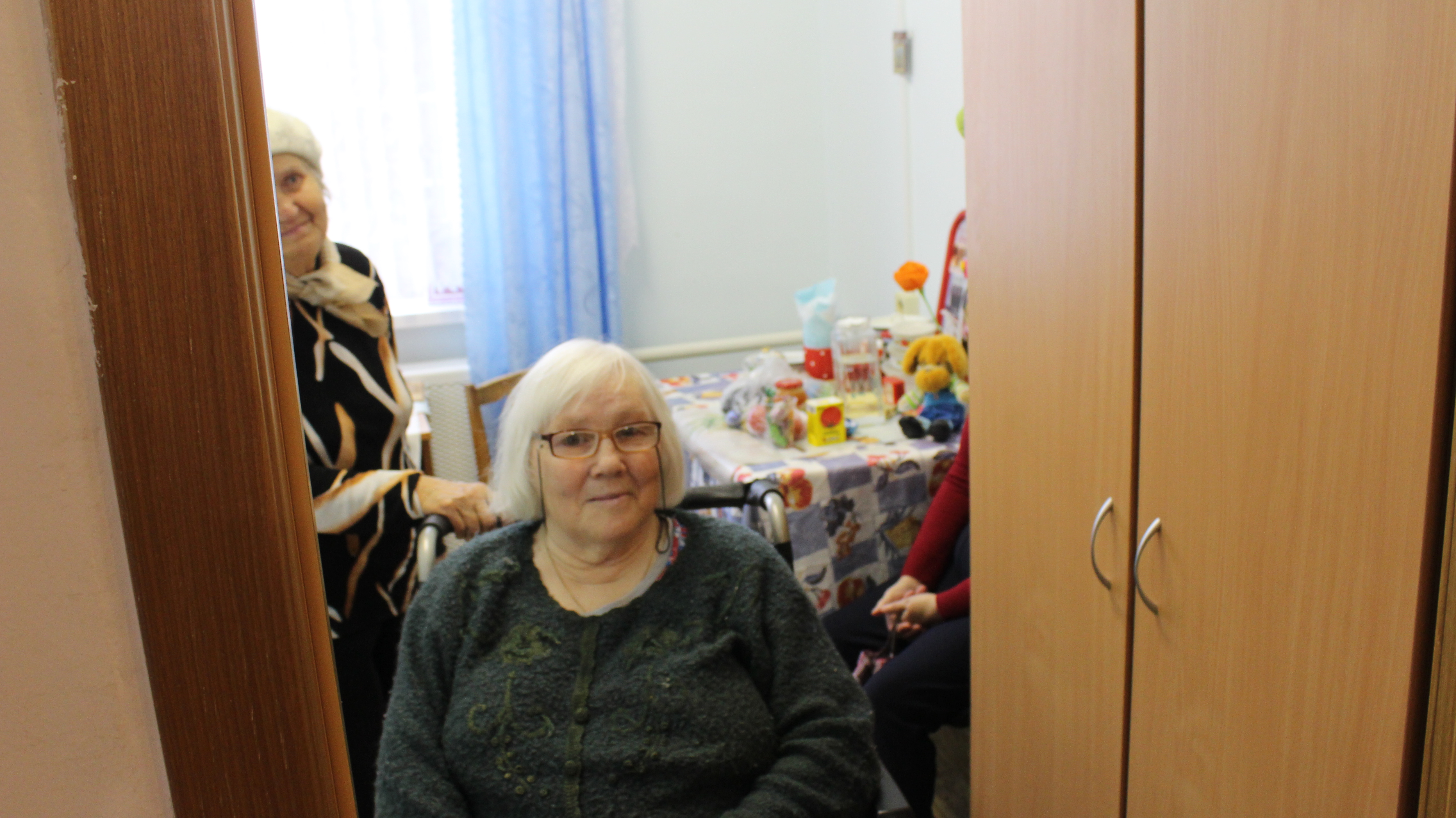 В доме престарелых имеется всё необходимое и поэтому студенты и сотрудники, чтобы порадовать пожилых людей собирали сладкие угощения: мягкие конфеты соки и фрукты.