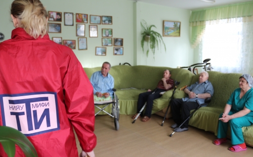 Вечером волонтеры "Службы добрых дел" и активисты Культурно-досугового сектора, вместе с членами партии "Единая Россия"  подготовили собранные подарки и отправились в городской дом ветеранов. Для пожилых людей были исполнены песни их юности и молодости, проведены душевные беседы. Благотворительная акция в очередной раз показала, что в ТТИ НИЯУ МИФИ много неравнодушных и добрых людей. Ветераны были очень благодарны за оказанное им внимание и душевное тепло, а студенты в свою очередь благодарили их за жизнь и ясное небо над головою!