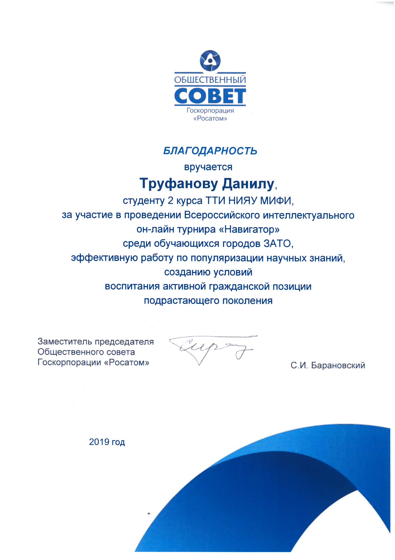 Общественный совет Госкорпорации «Росатом» второй год подряд поддерживает реализацию социально значимого образовательного проекта «Всероссийский интеллектуальный турнир «Навигатор».