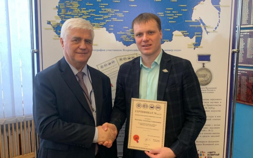 Из рук Сергея Друкаренко (первый вице-президент Международного союза НИО) Александр получил Сертификат профессионального инженера. Имя каждого победителя будет выгравировано на табличке и увековечено в здании РосНИО.
