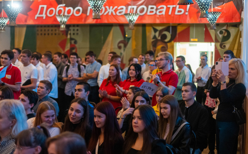 В танцевальном зале ДК «Икар» собрались 180 новичков, чтобы наконец стать частью большой студенческой семьи МИФИ.